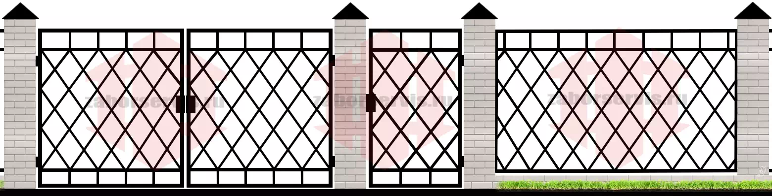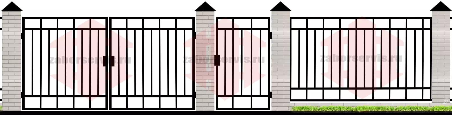 Забор из 3Д панелей ячейка 200х55 (на крашеных столбах 60x60)